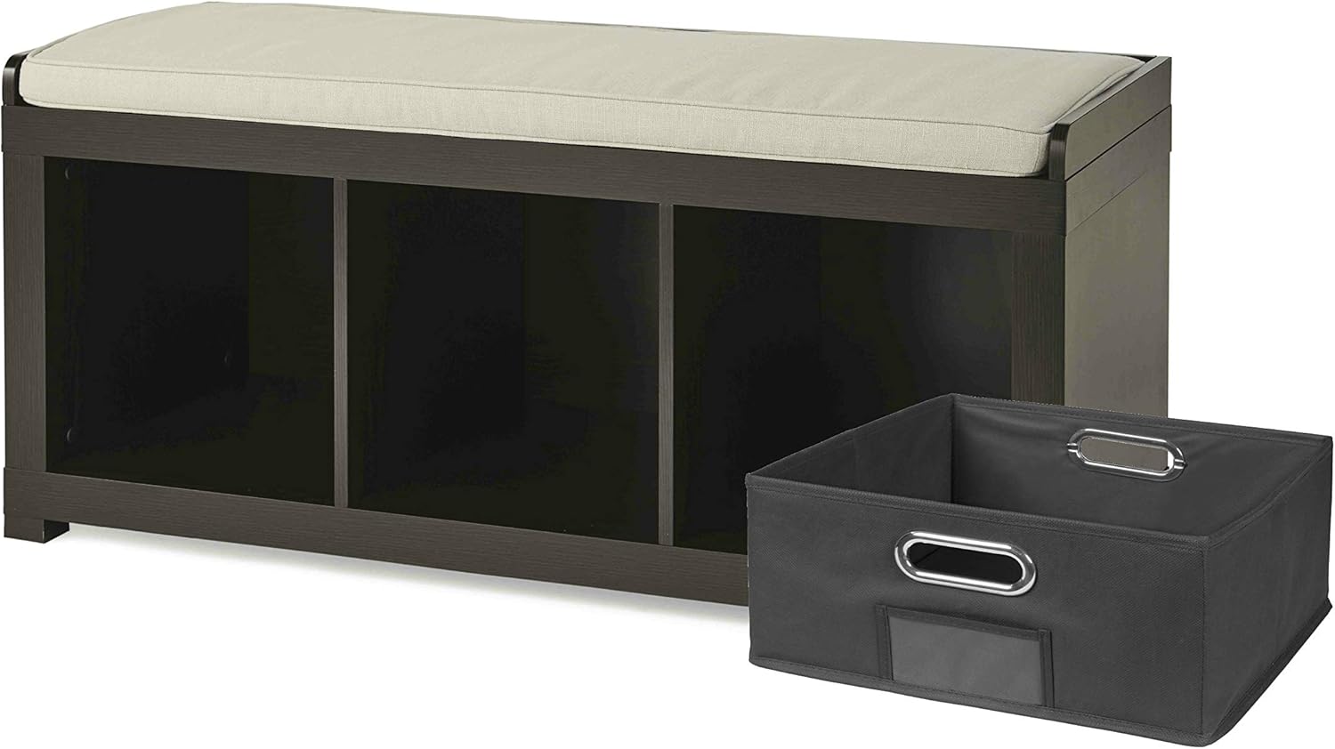 Better Homes and Gardens 3-Cube Storage Organizer Bench and Gray Fabric Bin Espresso